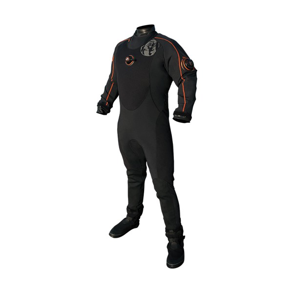 Vêtement utilisant la technologie Dry Core d'entrée de gamme. La fermeture étanche est placée dans le dos. Il est équipé de purge et d'inflateur Apeks.