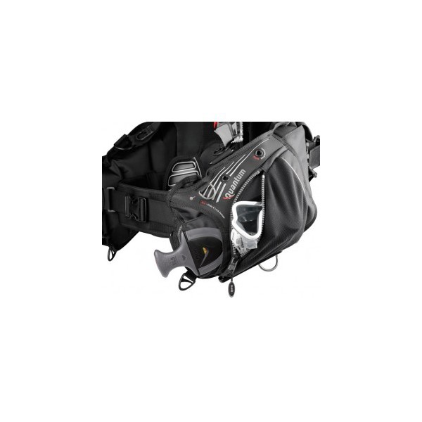 Sur la base d'une conception standard réglable sur le devant, il introduit de nombreuses nouvelles idées - dont un nouveau système de lestage intégré, et offre une solidité et une stabilité exceptionnelles. Une nouvelle vessie a été créée, qui conserve une grande capacité de portance tout en laissant plus de mobilité et de liberté de mouvements, grâce à un faible profil au niveau des lobes latéraux. Les renforts d'épaule eux-mêmes ont été l'objet de longues expériences, de manière à trouver la géométrie non seulement la plus solide mais aussi la plus confortable, ce qui est spécifique à chaque taille de gilet. Même la position des anneaux forme D en inox a été optimisée, pour offrir une plus grande facilité d'utilisation. un petit anneau en technopolymère a été ajouté sur l'épaule droite à un angle de 45°, pour permettre de placer une lanière attachant une console, de manière à ce que celle-ci reste dans le champ de vision du plongeur lorsqu'il est en position de nage. Le réglage de la sangle pectorale se fait sur un côté seulement, celui du tuyau annelé, afin que l'extrémité libre de la sangle ne se prenne pas dans la tirette de la soupape de purge de l'épaule droite. Sur la boucle de cette fermeture, on retrouve le nouveau sifflet à faible profil. Le raccord entre les renforts d'épaule et les sangles profite de la boucle pivotante Mares, qui permet un positionnement optimal de la sangle. Cela est encore amélioré par le fait que le bas de la sangle est cousu sur un anneau forme D, au lieu d'être fixé directement sur le lobe latéral, de manière à ce que l'arc de l'anneau puisse permette à la sangle de se déplacer en suivant la boucle pivotante qui est à l'autre extrémité. Mares a aussi utilisé des matériaux nouveaux. Pour la première fois sur un gilet stabilisateur, le panneau extérieur des grandes poches est fabriqué dans un matériau élastique : " le Supratex ". Cela permet d'augmenter la capacité de la poche, tout en gardant un faible profil lorsqu'elle n'est pas utilisée. Il est donc plus facile d'y ranger un masque, un parachute de signalisation ou toute autre chose, grâce aussi à la glissière renforcée ergonomique. Cette expérience préalable a montré qu'il conviendrait à cette utilisation : tout en étant élastique, il est solide et résiste à l'abrasion. Et pour la finition, des panneaux micro injectées donnent aux lobes latéraux un aspect riche et agréable. Le Quantum est le premier gilet Mares à disposer du nouveau système de lests intégrés SLS. Un tunnel spécial sur les lobes latéraux permet une insertion facile de la poche de lest. Une plaque rigide est intégrée dans de ce tunnel, afin de tendre le tissu et de réduire la friction due au froissement lorsque la poche de lest est insérée. Ce tunnel est indépendant de la grande poche, afin de minimiser les interférences entre les deux. Il a une capacité suffisante pour contenir une poche de lest de poids maximal, mais pas plus afin de garantir une stabilité maximale.les poches de lest d'appoint sont placées sur le dos de l'enveloppe, de chaque côté de la plaque dorsale, ce qui réduit l'inertie de rotation et les rend faciles d'accès. Le Quantum utilise la nouvelle monoplaque dorsale (" Backpack "), qui s'adapte aussi bien aux bouteilles uniques qu'aux bi (jusqu'à 2 x 12 l/80 pieds cubes) grâce à un ensemble spécial de deux sangles plus longues. La structure monoplaque est très solide mais plus légère que le système classique qui comporte deux plaques avec l'enveloppe en sandwich entre les deux. Une des caractéristiques particulières de la plaque dorsale est sa surface arrière, celle sur laquelle le bloc repose : celle-ci est penchée de 5° par rapport à la verticale. C'est trop peu pour être visible, mais suffisant pour garantir un espace supplémentaire de 5 cm/2 pouces entre le bas de la bouteille et le plongeur, évitant ainsi les contacts indésirables. Et lorsqu'elle est utilisée avec un bi, la monoplaque dispose de deux petits ailerons qui empêchent l'enveloppe de toucher la surface des blocs, ce qui permet de mieux ajuster le gilet sur les bouteilles. La plaque dorsale dispose d'un revêtement souple, pour le confort mais aussi pour la stabilité puisqu'il y a des éléments de friction sur les côtés qui réduisent les mouvements latéraux sur le corps du plongeur au cours d'une rotation. Le Quantum possède un nouveau raccord rapide au niveau de l'inflateur, avec trois orifices au lieu de l'habituelle association d'un orifice et d'un pont, ce qui permet une augmentation du flux de 30 %. Le Quantum a déjà obtenu la certification suivant la nouvelle norme EN1809:2014.
